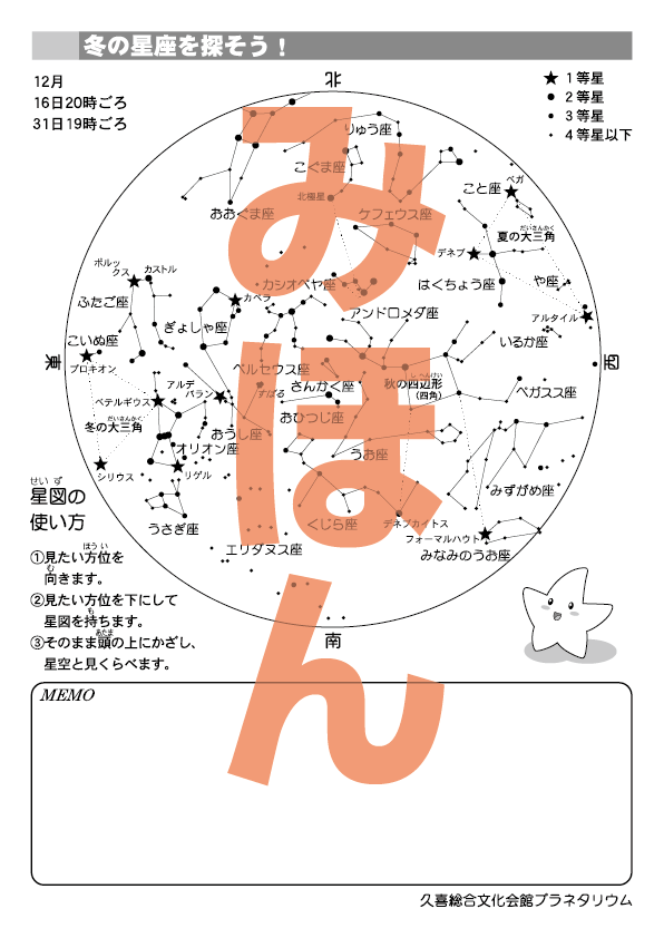 プラネタリウムで星図を使って冬の星座を探そう!オリオン座がどう動くか冬休みに観察してみよう!