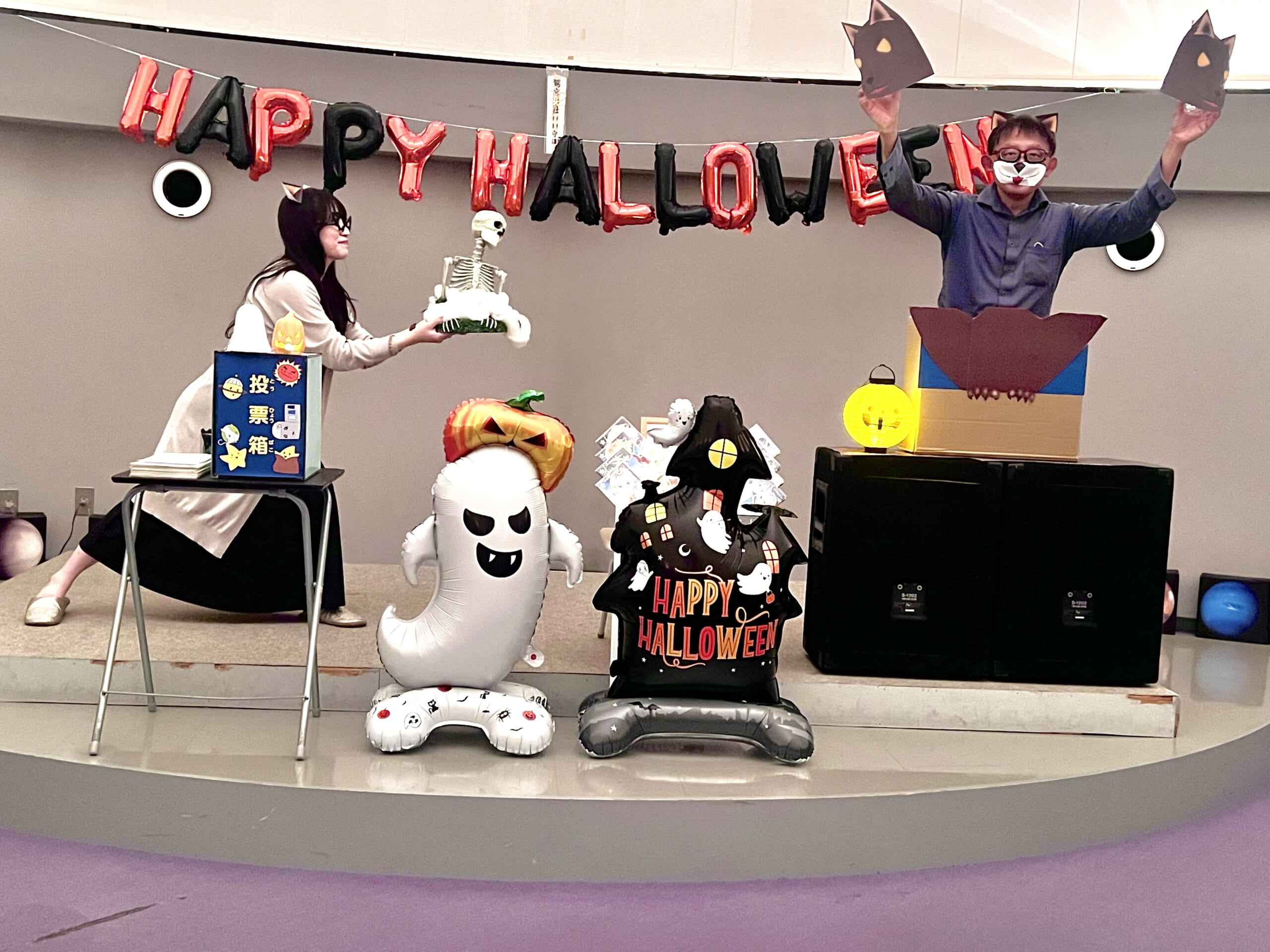 10月末まで、プラネタリウム前ロビー・ドーム内でハロウィン飾りやってます!