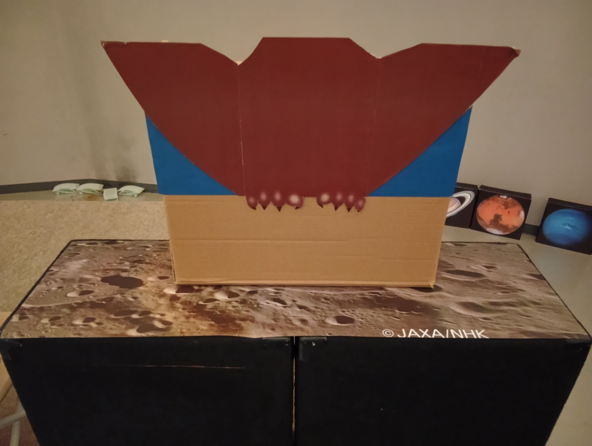 ▼プラネタリウム内に撮影スポットがあるよ!3人いたら3人いっしょに、おひとりさま用に残りふたつの頭もご用意!